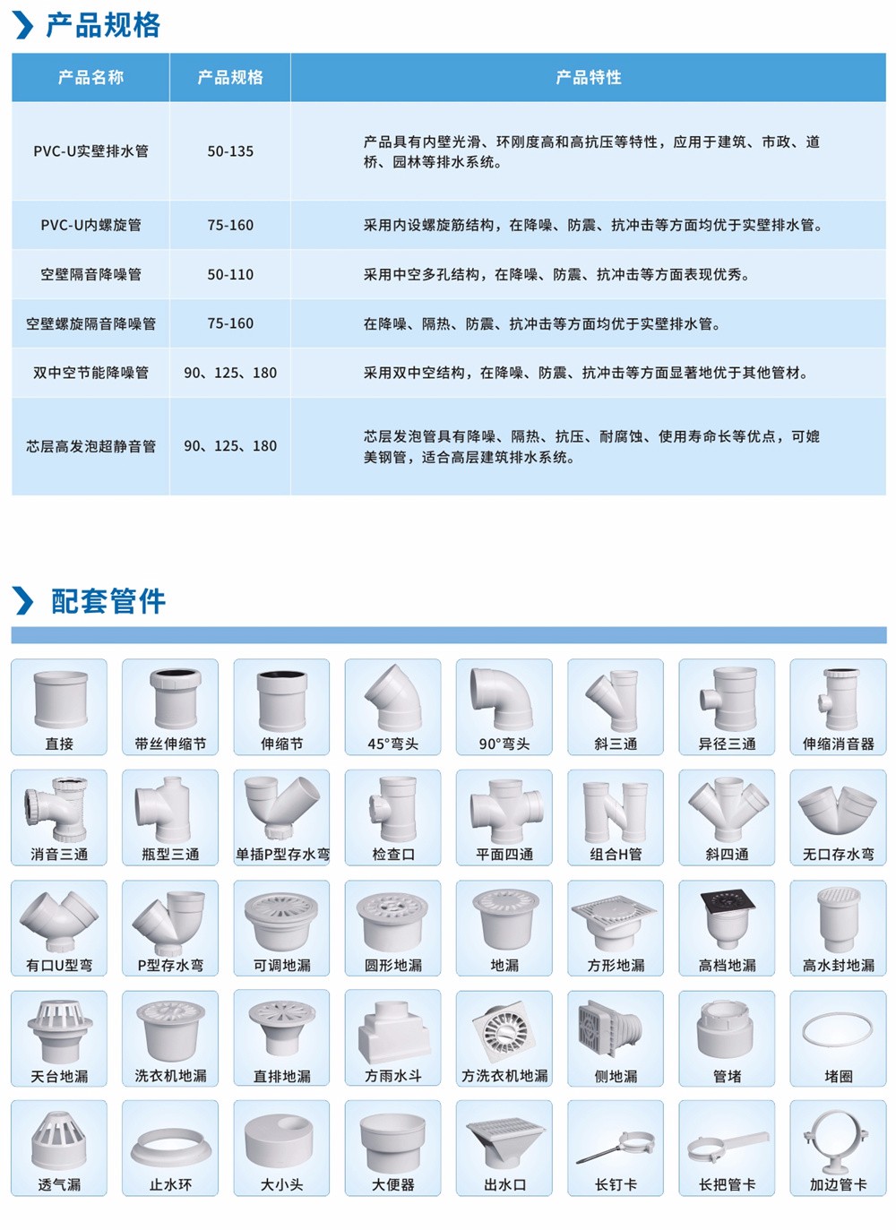生產(chǎn)標準:GB/T5836.1-2006(管材) GB/T5836.2-2006(管件)